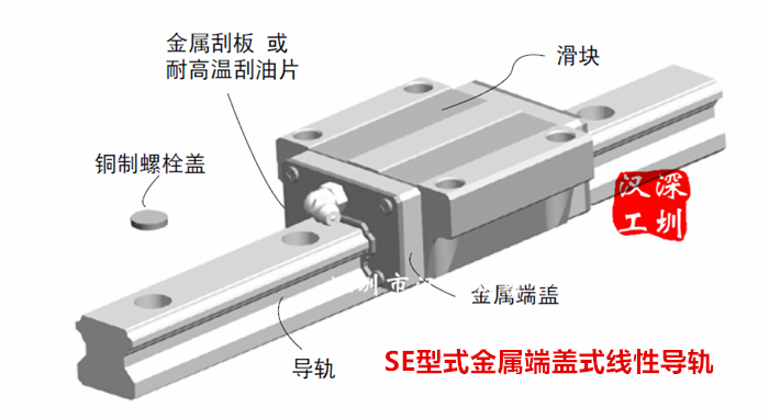 SE型式金屬端蓋式線性導(dǎo)軌,型號書寫例如:HGH25CA2R1000ZOC/SE。