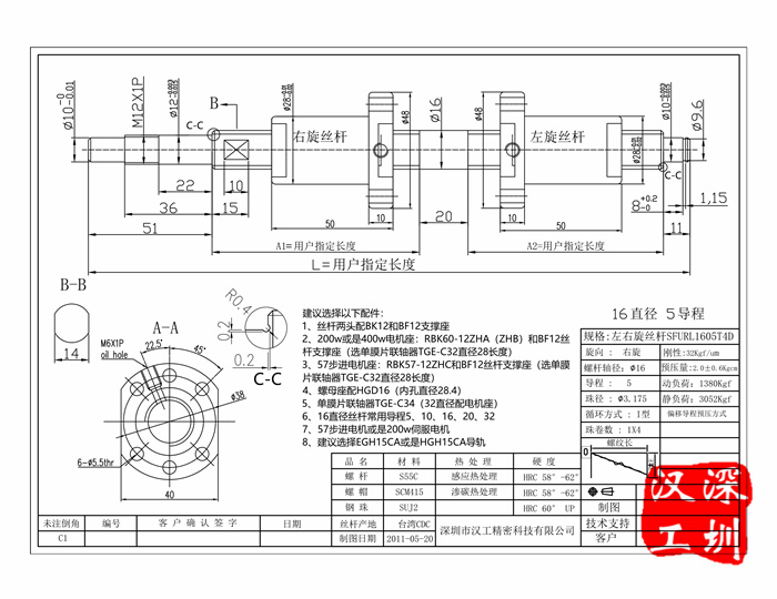 左右旋滾珠絲杠圖紙請聯系客服提供!