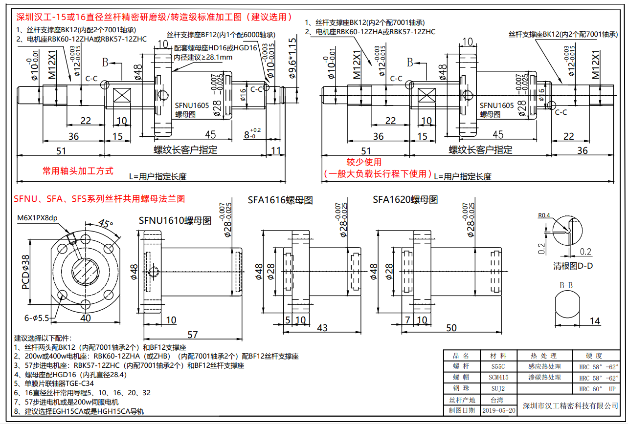 3、57步進電機座:RBK57-12ZHC(內配7001軸承2個)和BF12絲桿支撐座