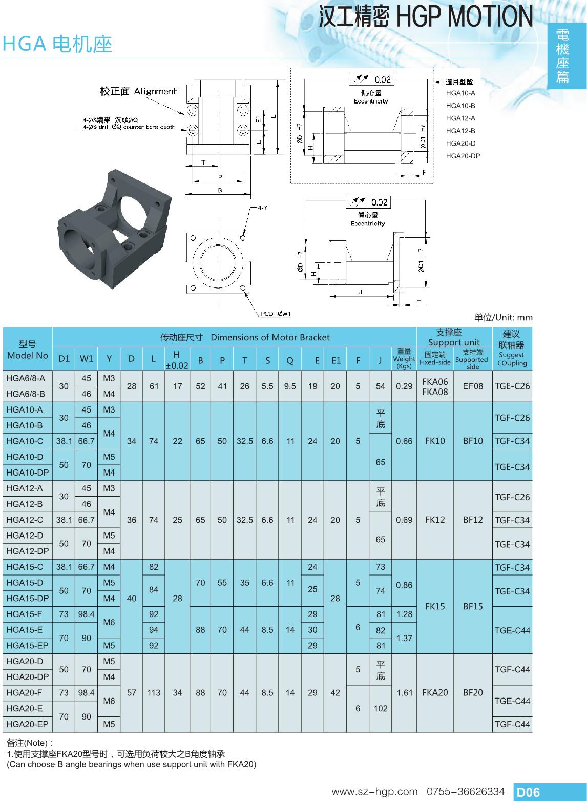 簡易型電機座尺寸介紹 HGA15-EP-C1、HGA12-DP-C1