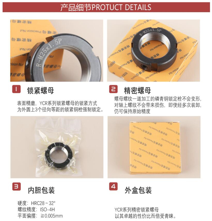 鎖緊螺母的外圓表面至內圓螺紋面鉆有貫穿螺紋孔(一般是2個,在外圓面呈90分布),用來擰入小直徑的沉頭頂絲,目的是給螺紋施加一個向心方向的力,防止鎖緊螺母松開。