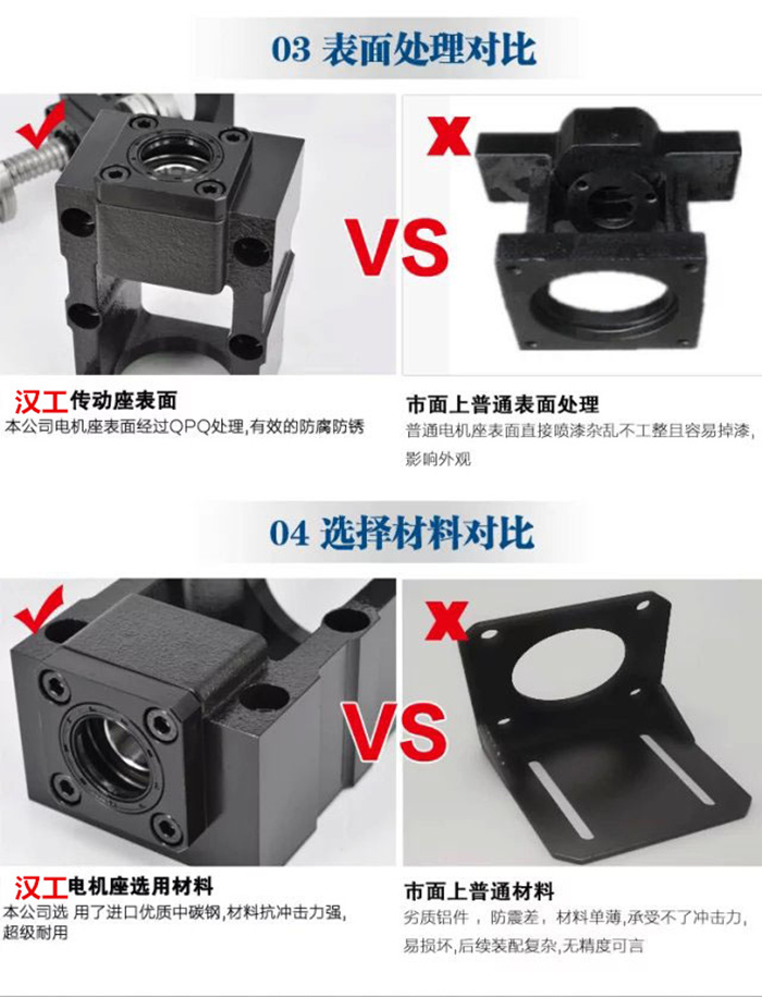 3、高定位精度:連接件內(nèi)部搭載滾珠絲桿專用支撐座(內(nèi)含徑角接觸配對軸承),有效控制絲桿軸向擺動。